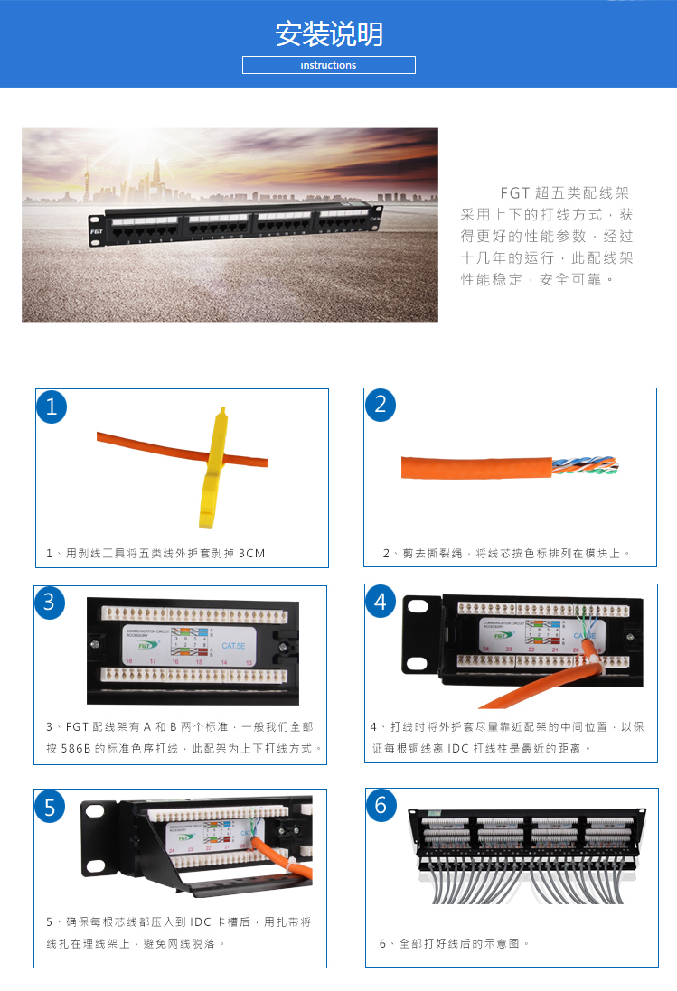 FGT 24口超五類非屏蔽網(wǎng)絡(luò)配線架執(zhí)行標(biāo)準(zhǔn):YD/T 926.3ISO/IEC 11801 、ANSI/TIA-568.2-D。支持話音通訊系統(tǒng)、10Base – T、16 Mbps 、100Base – T、155Mbps和622 Mbps ATM 、1000 Mbps、多媒體等方面的高速應(yīng)用。
