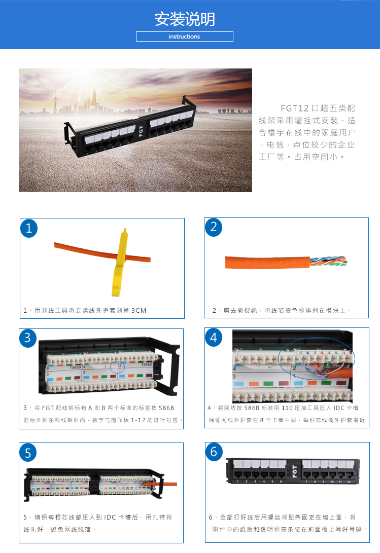 FGT 12口超五類非屏蔽網(wǎng)絡(luò)配線架該產(chǎn)品執(zhí)行標(biāo)準(zhǔn):YD/T 926.3、ISO/IEC 11801 、ANSI/TIA-568.2-D。支持話音通訊系統(tǒng)、10Base – T、16 Mbps 、100Base – T、155Mbps和622 Mbps ATM 、1000 Mbps、多媒體等方面的高速應(yīng)用。