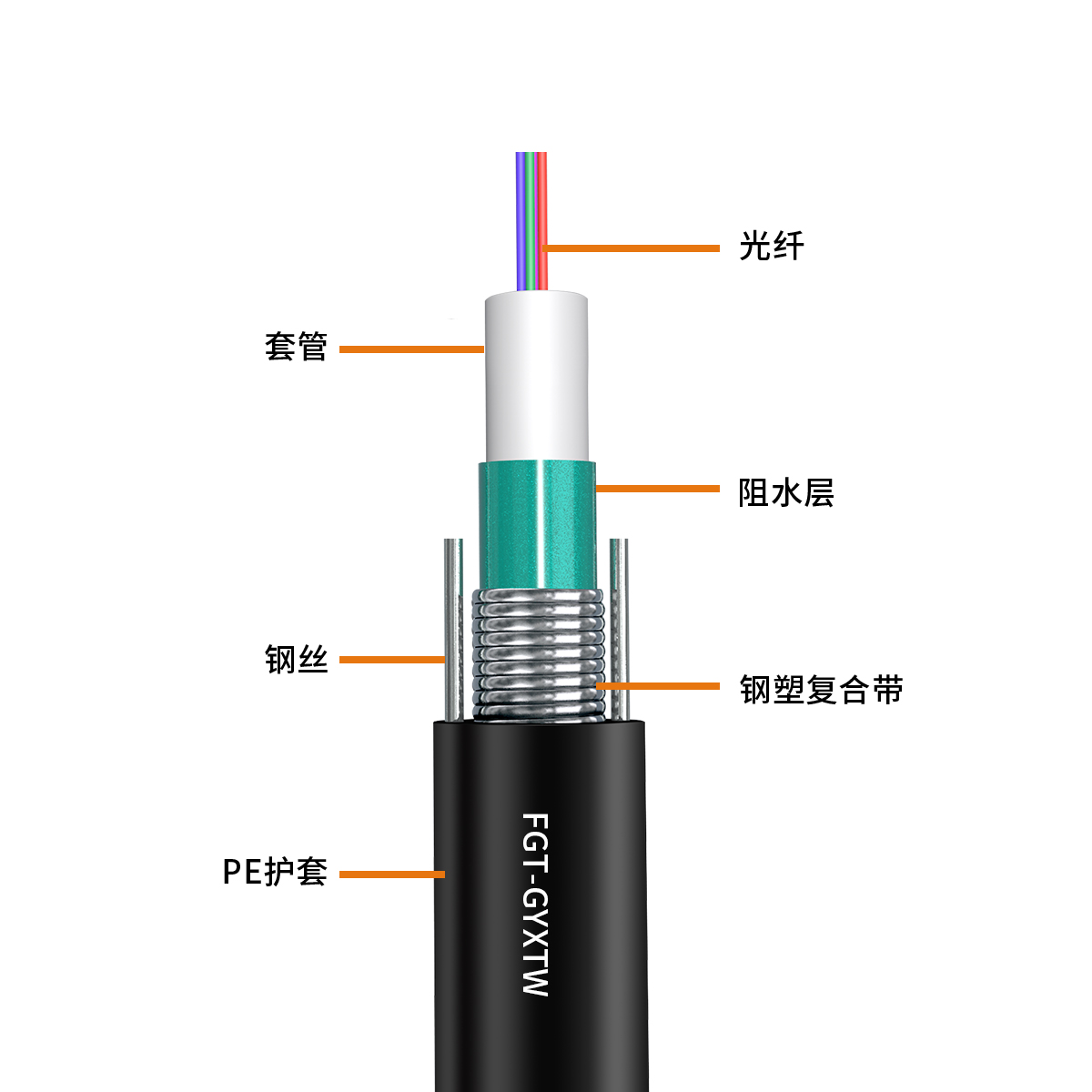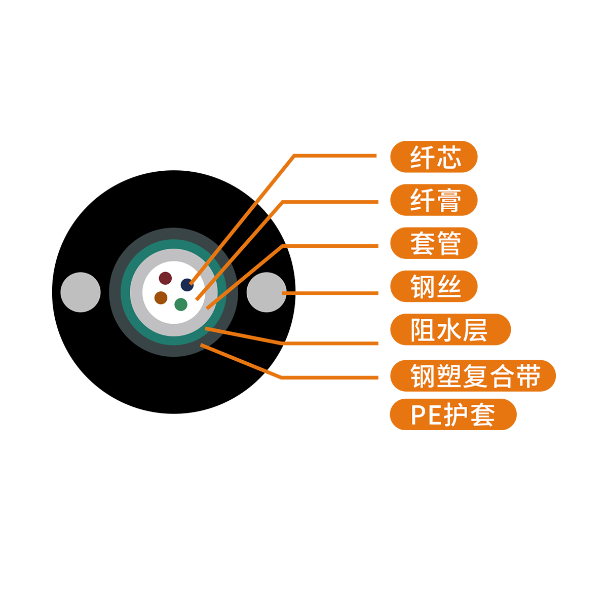 兩根平行鋼絲保證光纜的抗拉強度,直徑小、重量輕、容易敷設