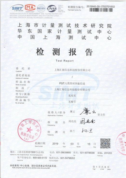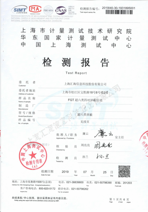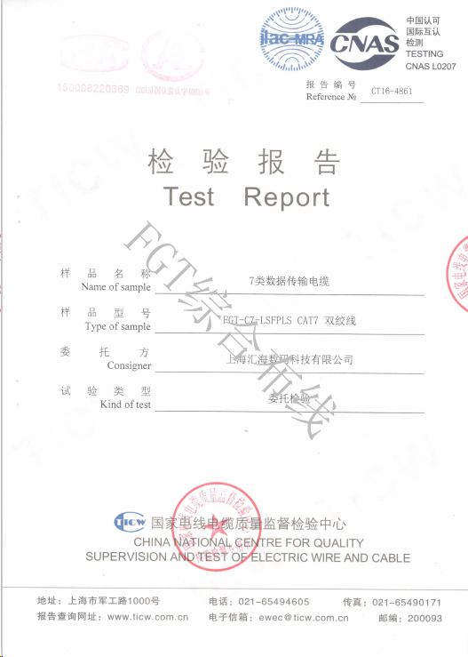 七類網(wǎng)絡(luò)雙絞線檢測檢測報告