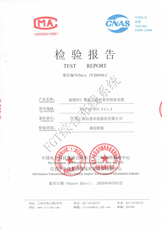 阻燃ZR-RVS2x1.5電線檢測報告